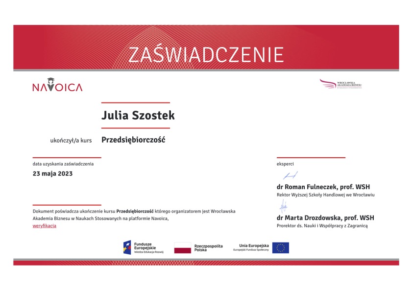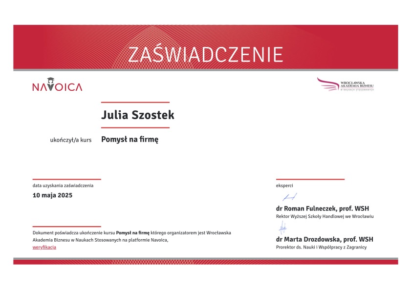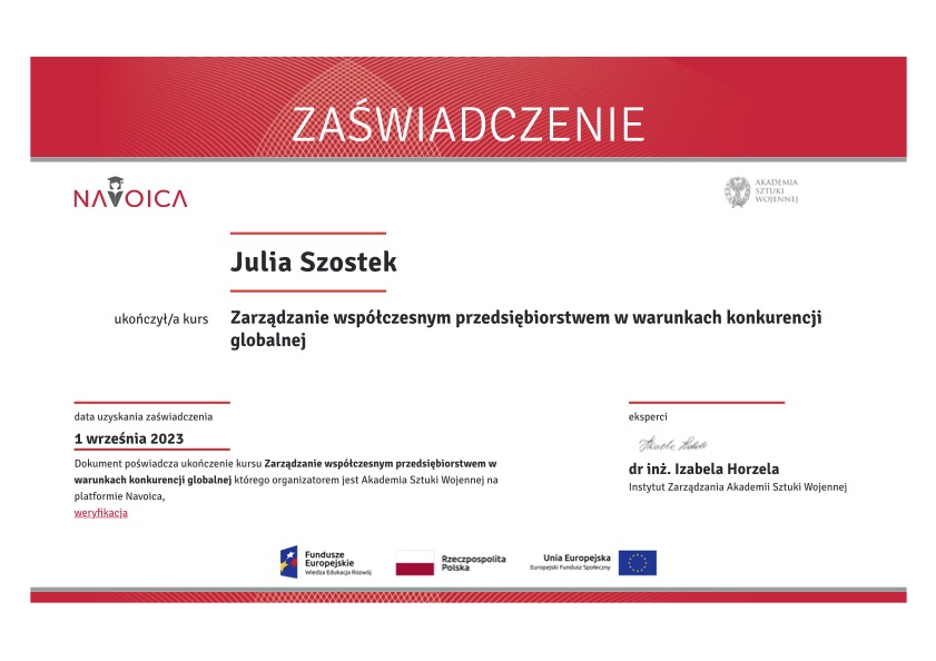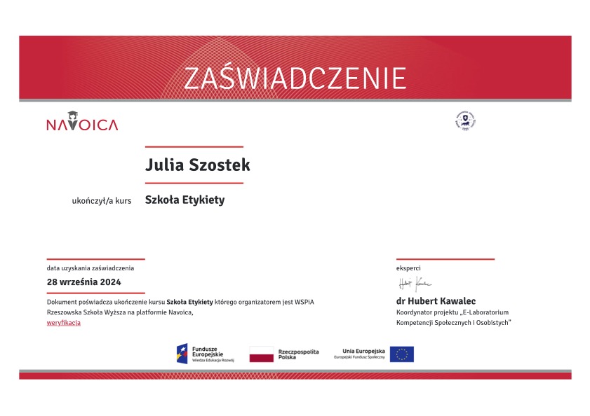 Posiadam prestiżowe certyfikaty: